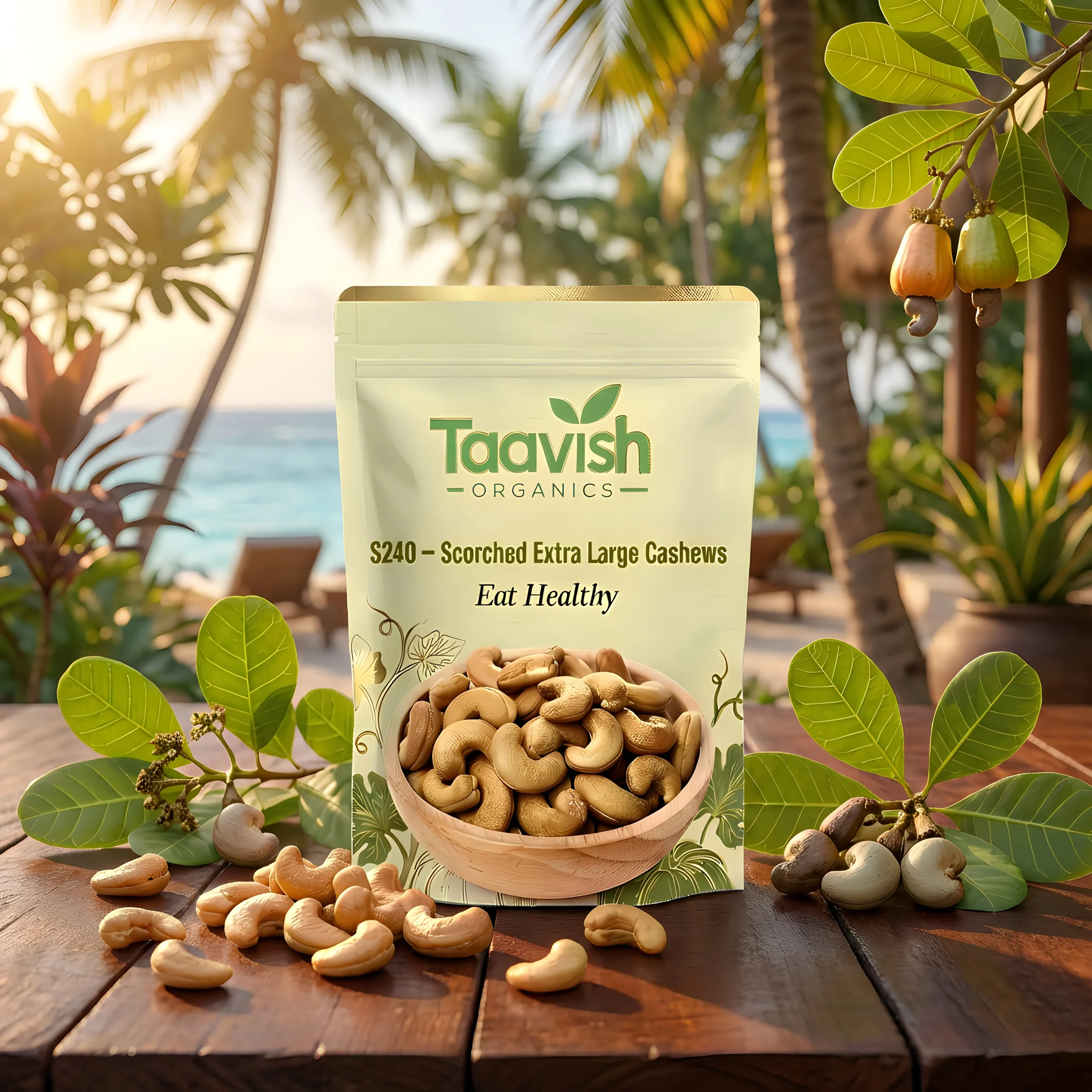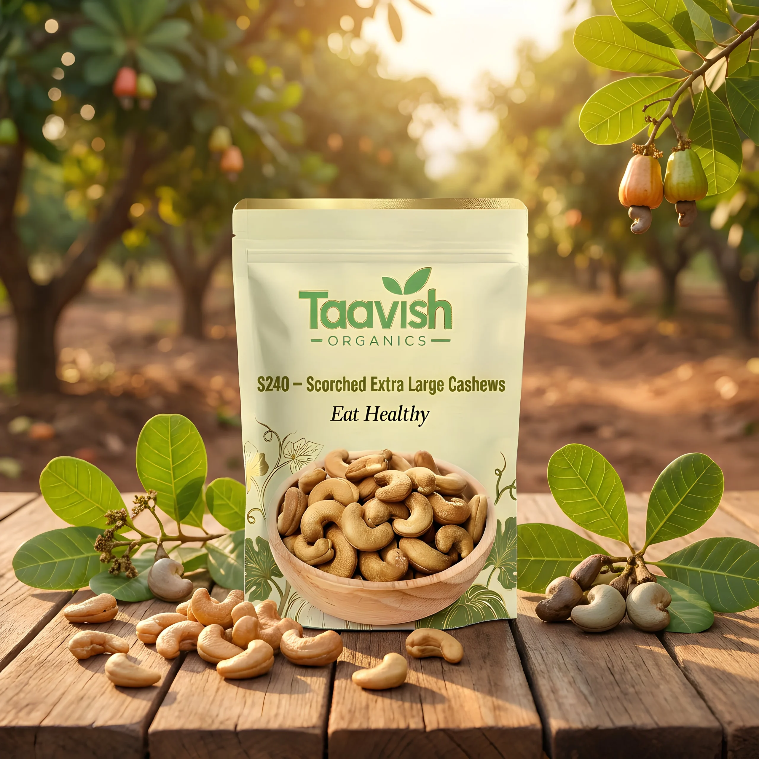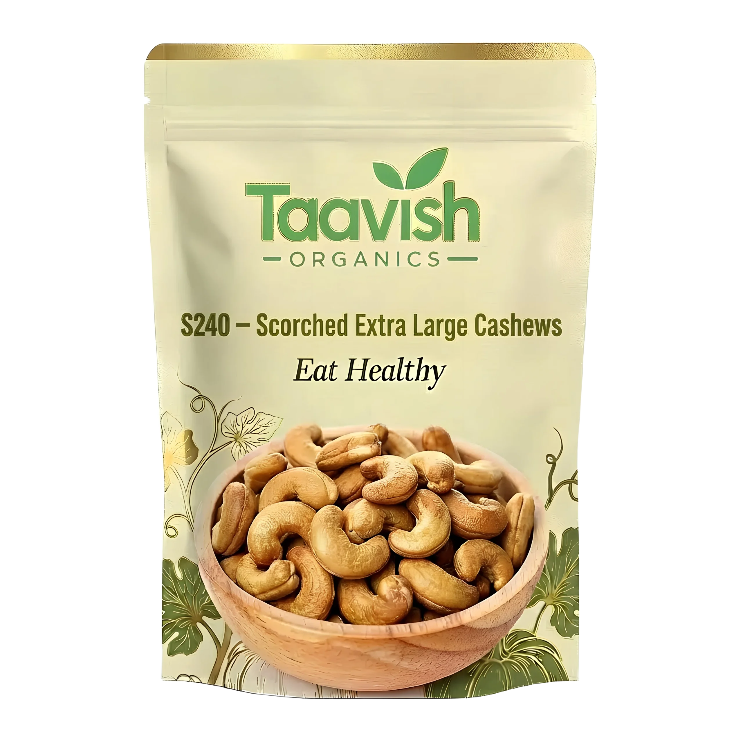 Enjoy premium size with excellent value through S240 – Scorched Extra Large Cashews, sourced from the renowned Panruti cashew belt. These cashews feature extra-large whole kernels with a slightly scorched appearance, while retaining their natural crunch, buttery texture, and rich nutty flavor.